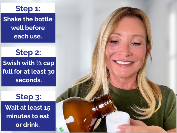Use Tooth & Gums Tonic as part of your daily routine. Rinse with 1–2 teaspoons for 30–60 seconds after brushing or as directed by your dental professional. Do not swallow.